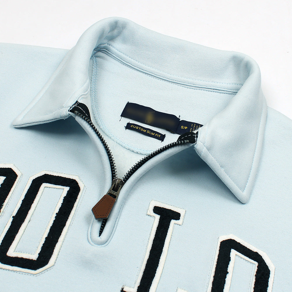 RL POLO SCRIPT COLLARED QUATER ZIP SWEATSHIRT SKY
