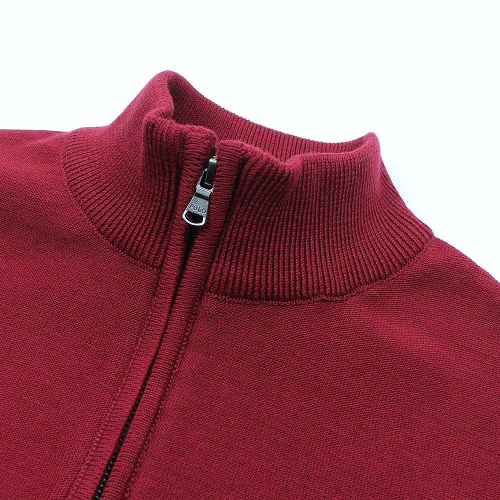 RL PREMIUM COTTON CABEL-KNIT ZIPPER POLO MAROON